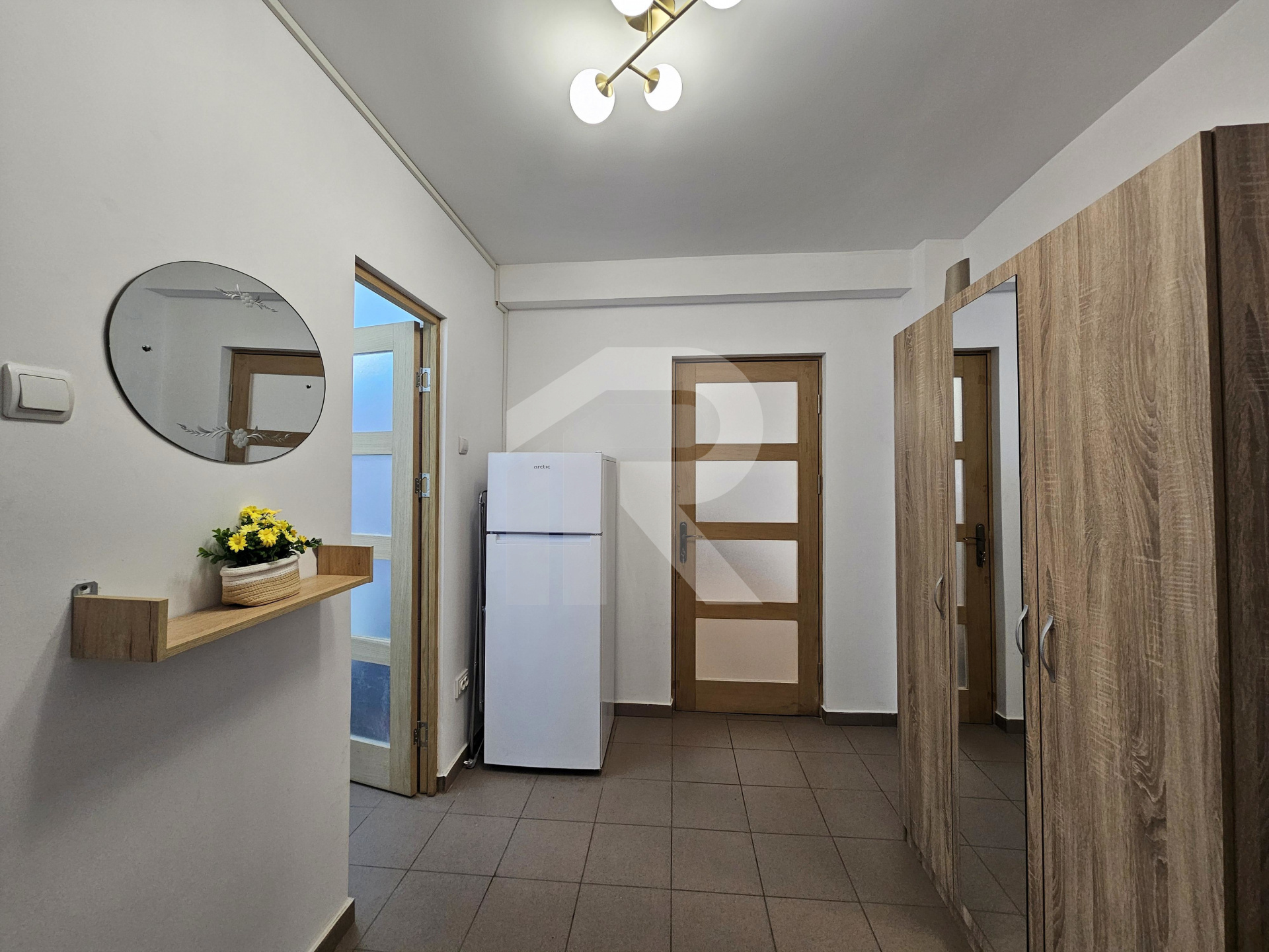 Camera de zi mare, bucătărie închisă completa, dus walk-in si fereastra aerisire la baie, hol mare spatios.