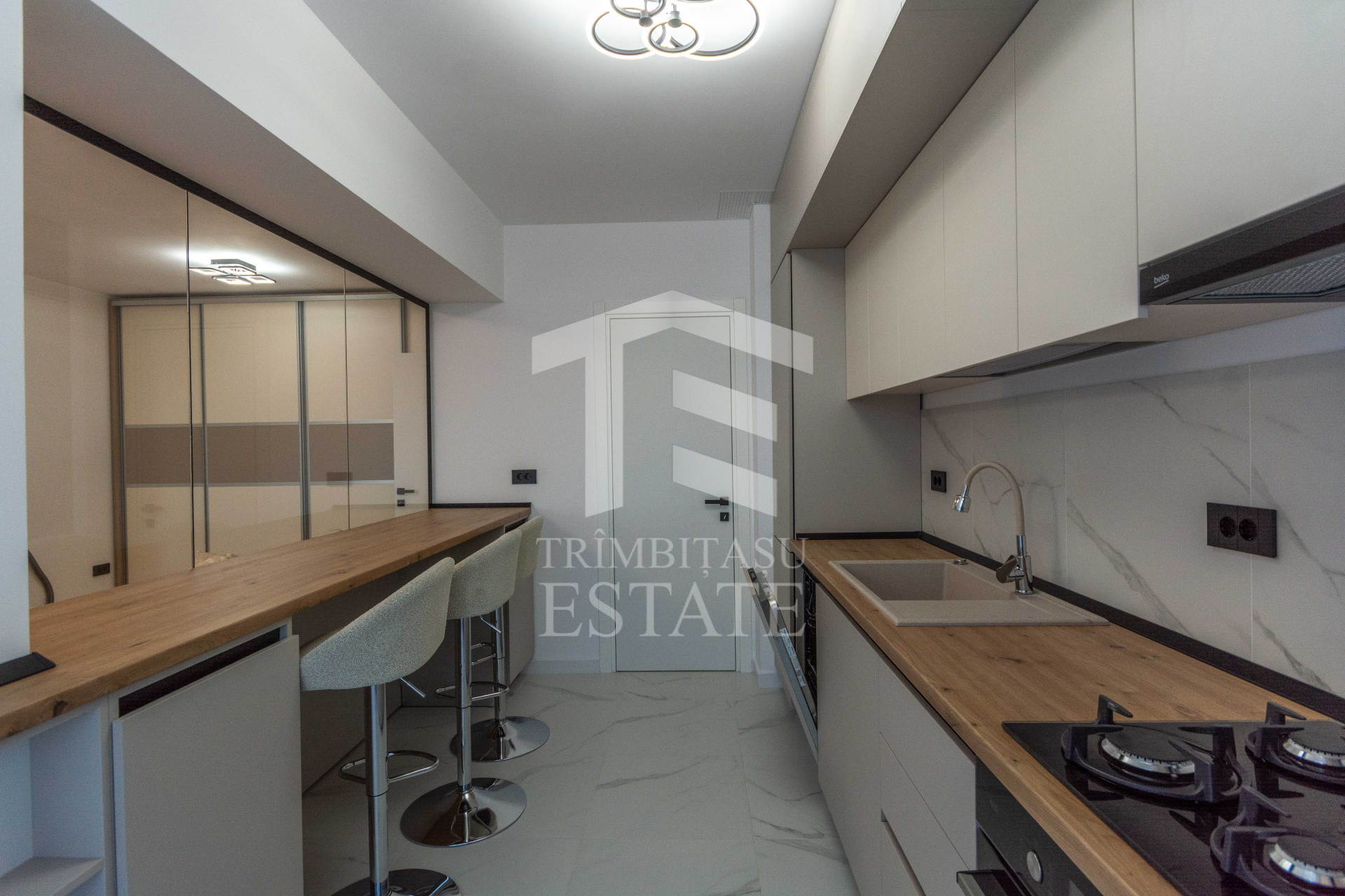 Locuinta impresioneaza prin finisajele peste medie si atentia acordata detaliilor, fiind complet mobilat si utilat cu mobilier pe comanda si electrocasnice noi, de calitate.