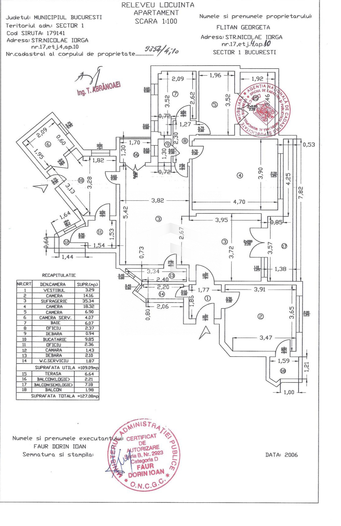 Suprafață totală: 127 mp, din care 109 mp utili.