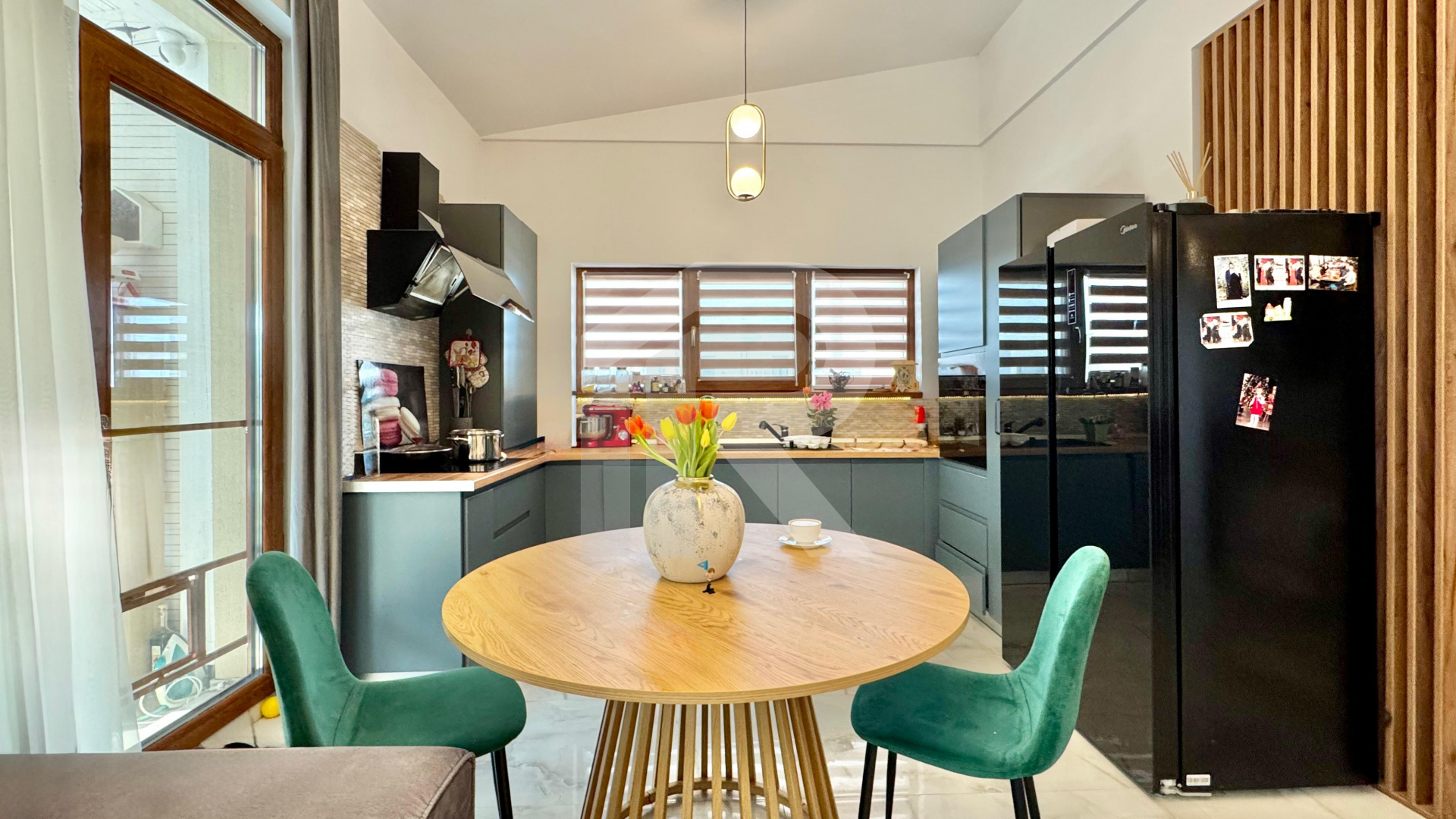 Dispune de 4 camere la care se adauga o terasa inchisa in sticla. Incalzirea se realizeaza prin pardoseala cu ajutorul unei centrale termice prin condensare.